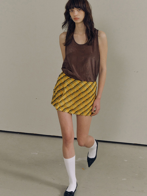 [포지프레클즈] Fringe Check Wrap Skirt_Yellow