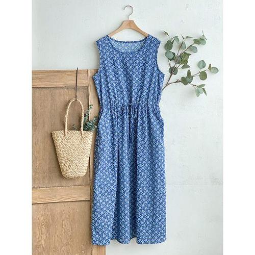 [옷자락] 여자 휘뚜루 바캉스룩 A라인 프린팅 민소매 롱원피스