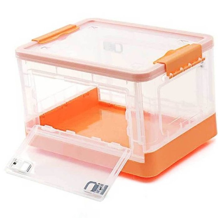 엄지척 폴딩 리빙박스 27L 오렌지 바퀴 수납정리함 플라스틱