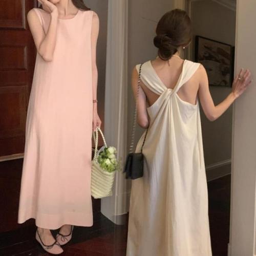 [다잇템]여자 투컬러 뒷꼬임 박스 SS 슬리브리스 원피스 (10616057A)