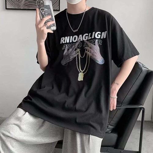[RGKL12OU]골드 체인 넥클래스 프린팅 오버핏 박스 티셔츠