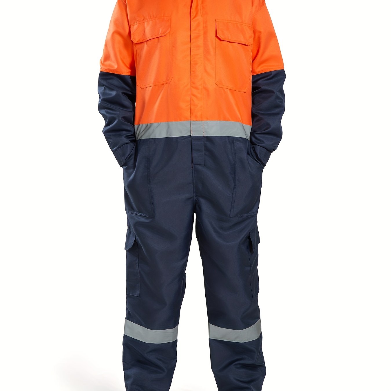 TEMU 봄/가을 스타일 투톤 캐주얼 점프수트 (포켓 및 탄성 밴드 포함), 야외 활동에 적합 (Shule Water OBM)