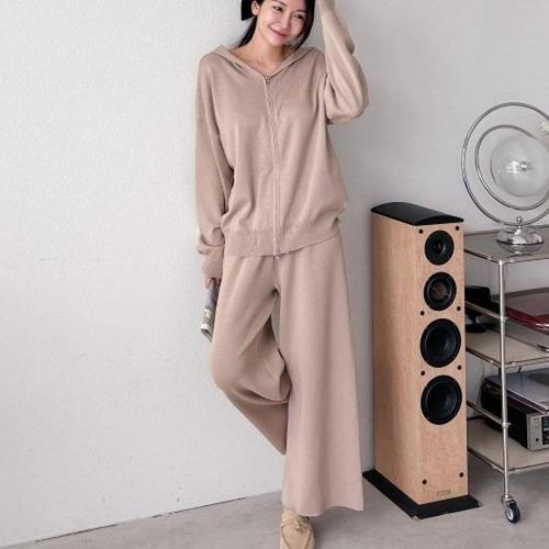 [다잇템][다잇템] 여자 고무줄 니트후드집업 박시 FW 통바지 세트_18344479_588872