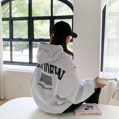 SAHINER 여성 가을겨울 빅사이즈 오버핏 후드 기모 맨투맨 BWY03