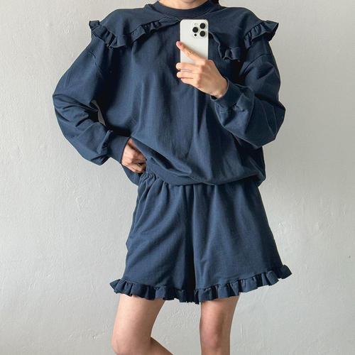 [옷자락] 여자 러블리 세일러 박시 맨투맨 프릴반바지 면 세트