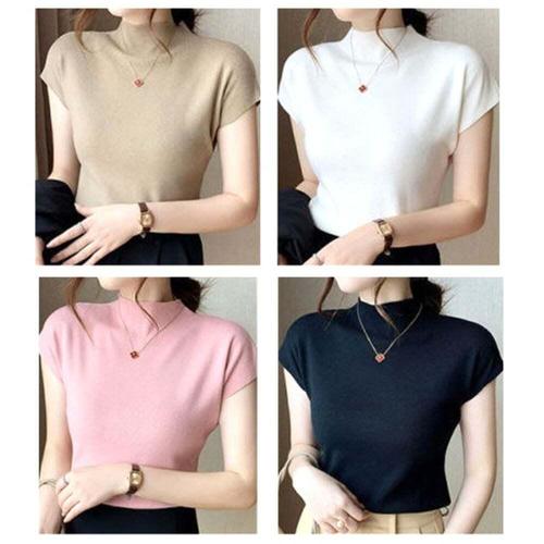 여성 반목 베이직 니트 이너 티셔츠 써머 반팔 폴라 이너티