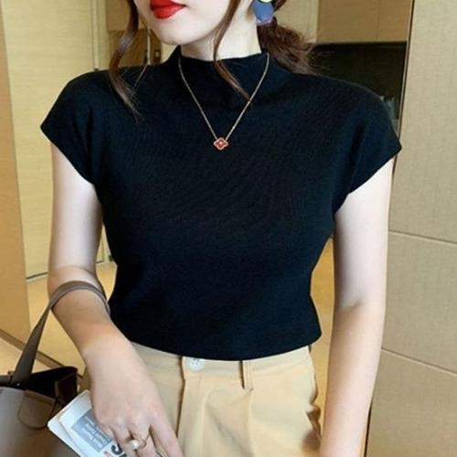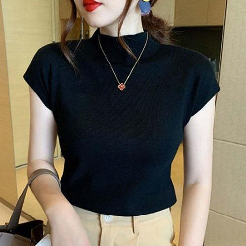 [엄지척]여성 반팔 니트 티셔츠 여름 반목 캡소매 데일리룩_19681782_667501