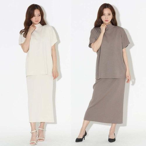 [에이치플러스몰]롱 니트 스커트 반목 여름 반팔 세트 치마