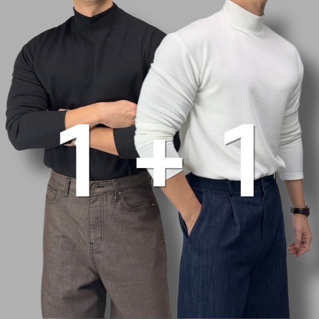 1+1세트 남성용 데일리 무지 고탄력 캐시미어 반목 목폴라 니트 긴팔티 Sevenmoon