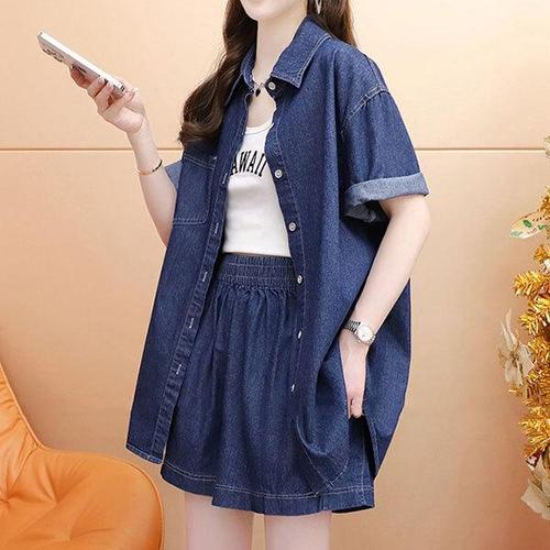 [퍼플핏]콤마 데님 반팔셔츠 반바지 상하세트_P55TP004