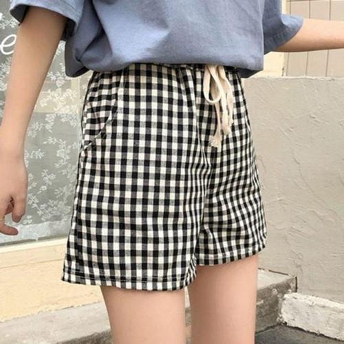 [에이치플러스몰]반바지 점프수트 체크 숏팬츠 캐주얼룩 편한바지 여름