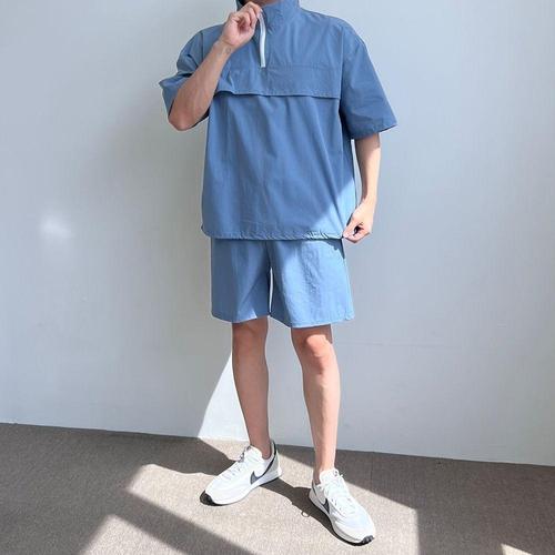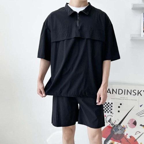 남자 하프집업 아노락 후드 긴팔 반바지 트레이닝세트