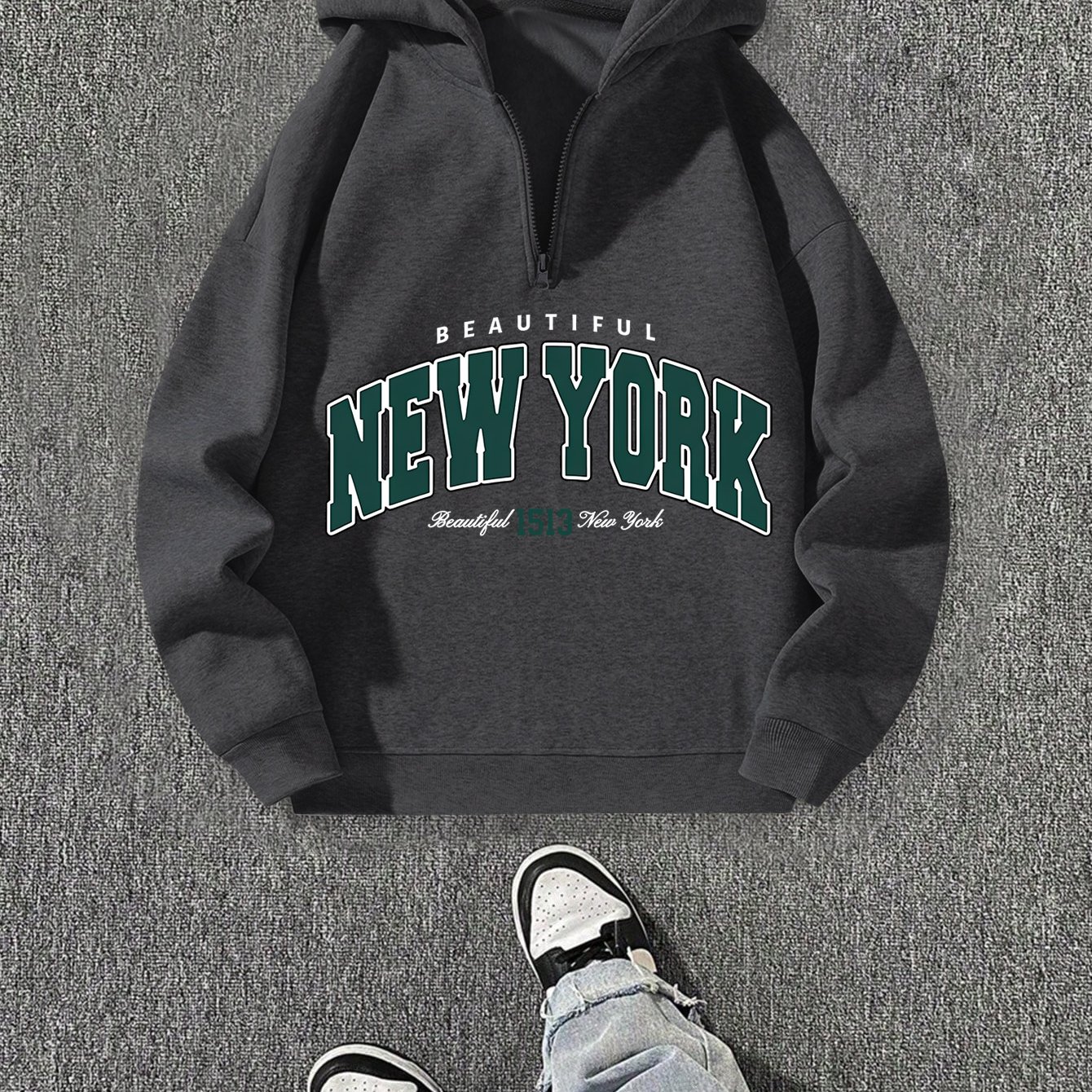 TEMU 남성용 캘리포니아 웨스트코스트 자수 플러시 후드티 - 두꺼운, 포근한 폴리에스테르 양면 플리스 체크 디테일, 가을 & 겨울용 캐주얼 긴팔 풀오버, 플리스 안감 후드티