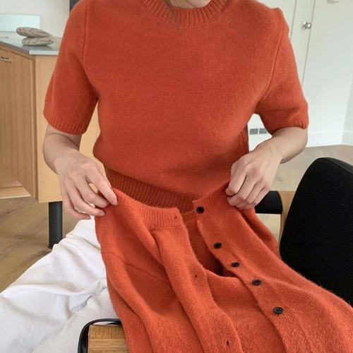 [옷자락]여자 비스코스 라운드넥 반팔 니트 가디건 세트