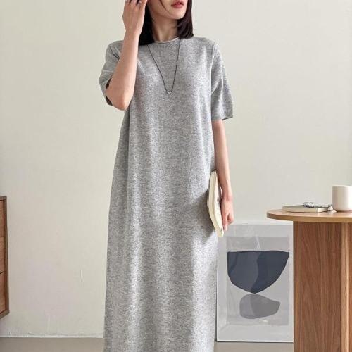 [다잇템][다잇템] 여자 주머니 반소매 봄등원룩 울니트 미니멀리즘 라운드 롱원피스_20120593_588872