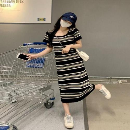 [오노마] ONM 스퀘어넥 스트라이프 반팔 니트 롱원피스 여름 여성