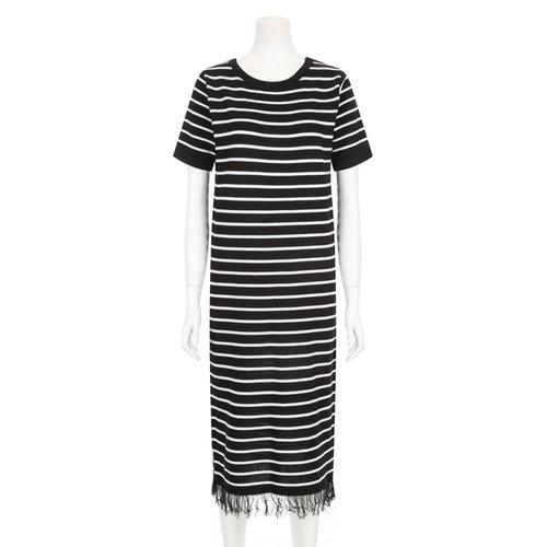 [샵앤][샵앤] 여성 라운드넥 단가라 밑단 포인트 반팔 롱 니트 원피스 EGG-WDR-20663-블랙