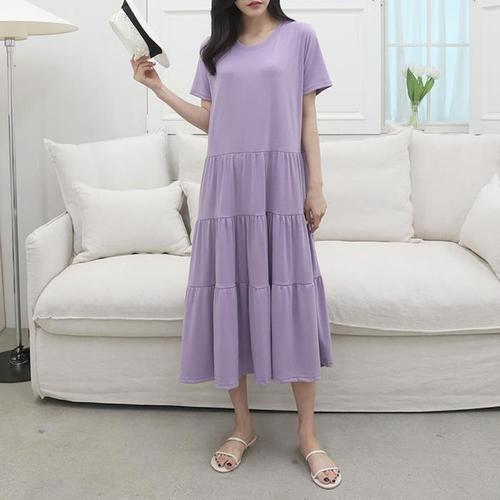 [다잇템]여자 부드러운 티어드 반소매 박시핏 롱 원피스 (10590952A)