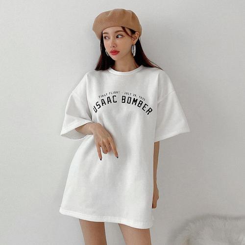 [에이치플러스몰]레터링반팔티 여름티셔츠 여성롱반팔티 롱반팔티