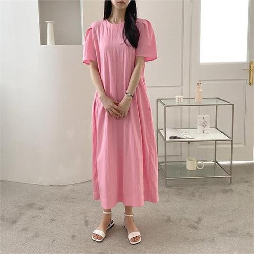 [오너클랜]인기상품 여름용 심플 반팔 롱 원피스 데일리 캐주얼 A라인 드레스 [WFLLB5Z_260304]