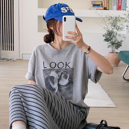 여름상품701여성빅사이즈 반팔티셔츠 여자롱 루즈핏 박스 라운드넥티 프린트 (새로본)