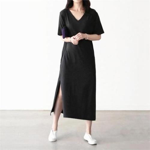[오너클랜]인기상품 여름용 트임 롱 원피스 반팔 데일리 캐주얼 홈웨어 여성복 [WFLL8VM_260304]