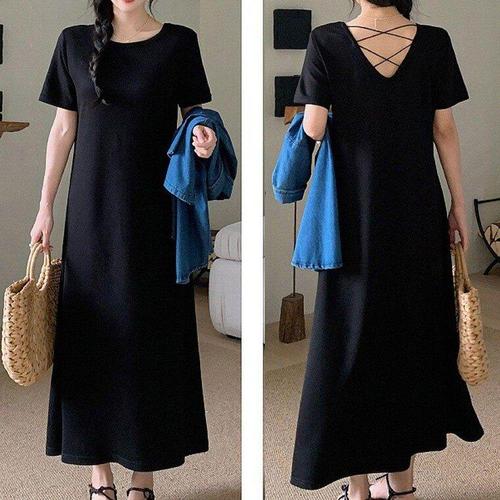 [굿쇼핑몰_의류]여자 신상 뒷트임 롱원피스 여름 데일리 반팔