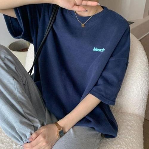 [엄지척]여자 오버핏 네이비 여름 반팔티 영문로고 스트릿_19610681_667501