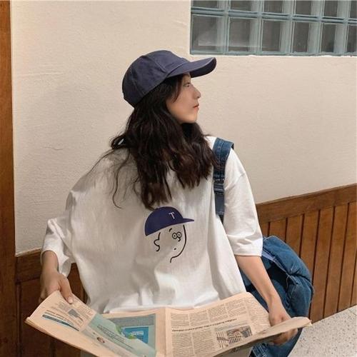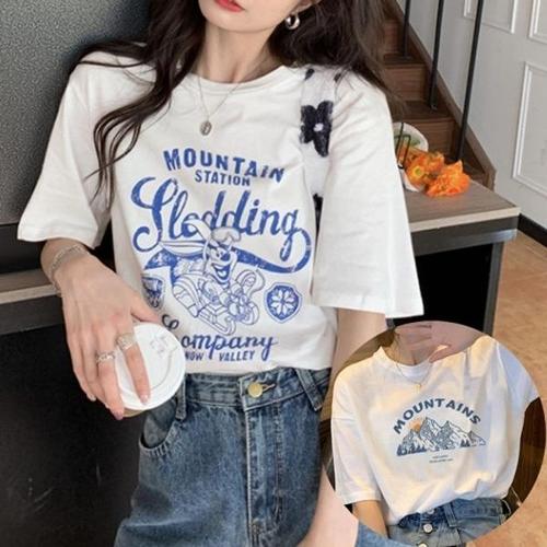 [엄지척]여성 프린팅 코튼 오버핏 반팔티_19613053_667501