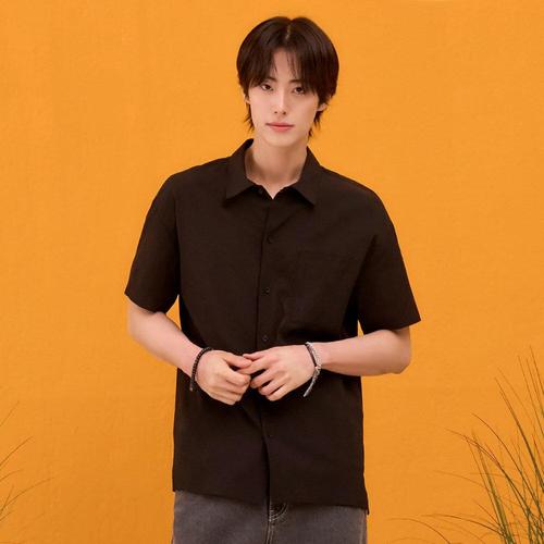 남성 차이나칼라 반팔 와이셔츠 남자 정장 무지 셔츠 남방 직장인 회사원 여름 기본핏 선물 / 1062 블랙