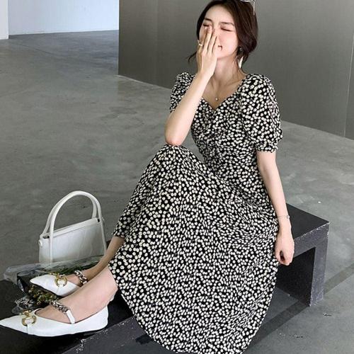 3컬러 볼륨 포프소매 여름 데이트룩 반팔 롱원피스