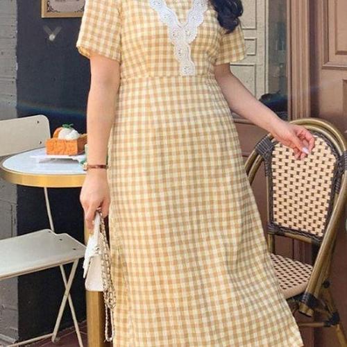 [에이치플러스몰]빅사이즈 반팔 체크 원피스 ST23038