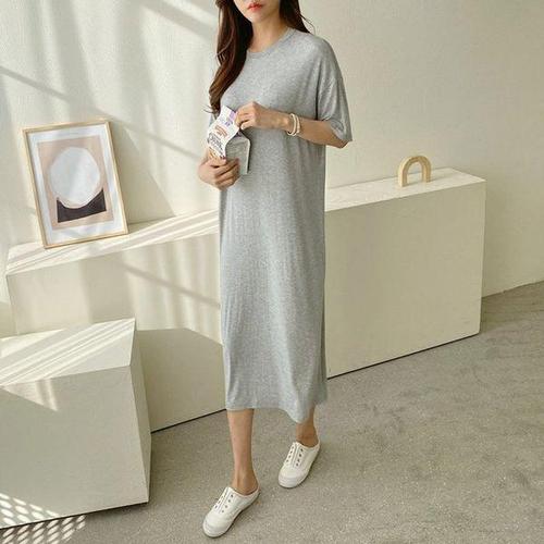 [에이치플러스몰]무지 반팔 롱 원피스 홈웨어
