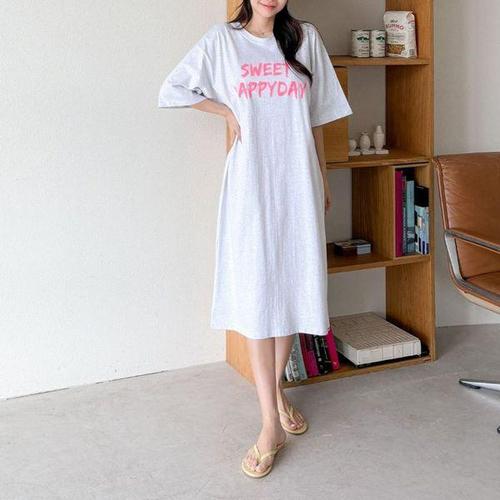 [에이치플러스몰]스윗스윗 해피 반팔 롱 원피스 홈웨어