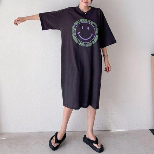 마쿠쿠 1+1 세트 스마일 여성 잠옷 홈웨어 원피스 반팔 롱 티셔츠
