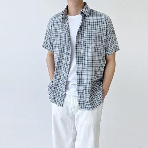 캐쥬얼 오버핏 정장셔츠 반팔 남방 체크셔츠 셔츠 WFN5EE6