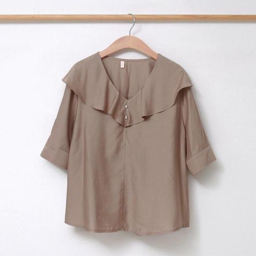 국산 여성 프릴 V넥 정장 출근룩 반팔 블라우스 REI-WBL-5173-모카
