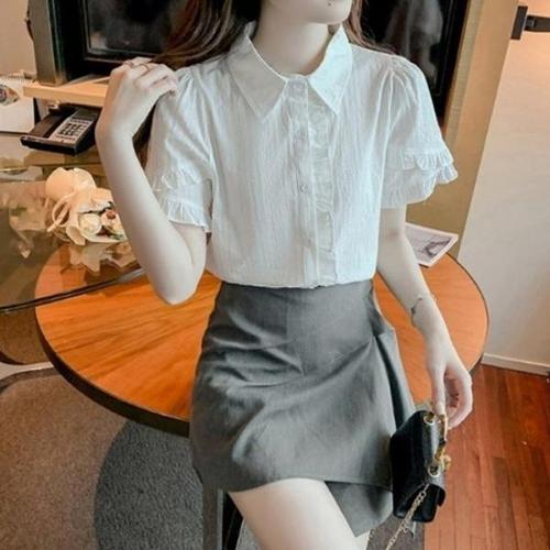 [엄지척]셔츠 여름 반팔 카라 퍼프 블라우스 정장_19645098_667501