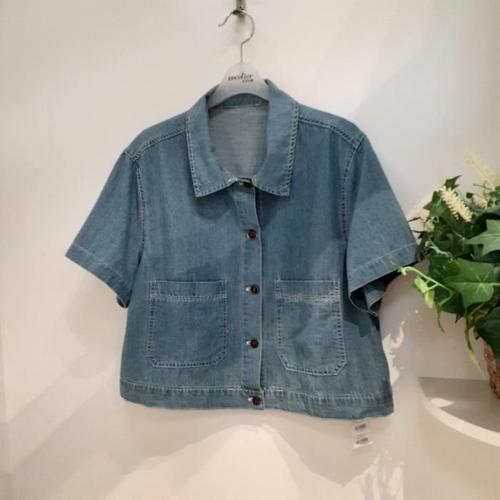 [에이치플러스몰]여성 여름 세미 크롭 반팔 청자켓 남방 데님 셔츠