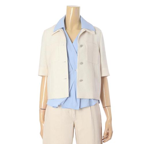[다잇템]여성 민무늬 트위드 반소매 버튼 더블포켓 자켓