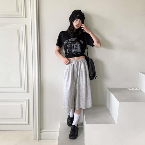 [1+1] 여자 빅사이즈 반소매 U넥 그런지 티셔츠