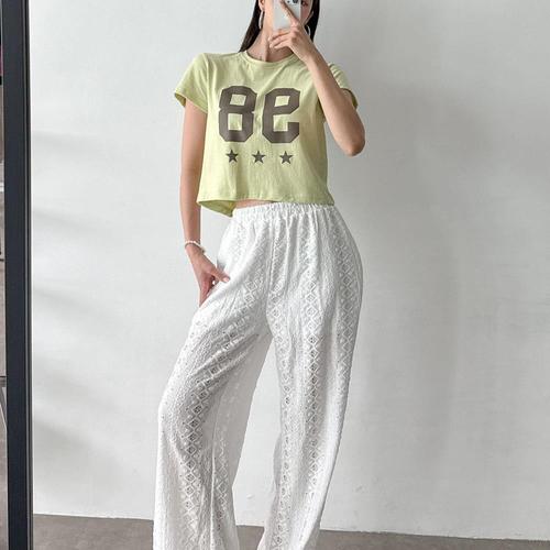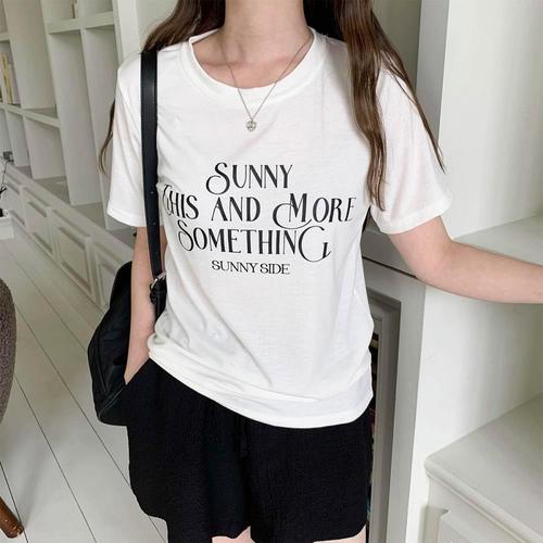 [1+1] 여성 반소매 레이온 편한 U넥 필기체 티셔츠