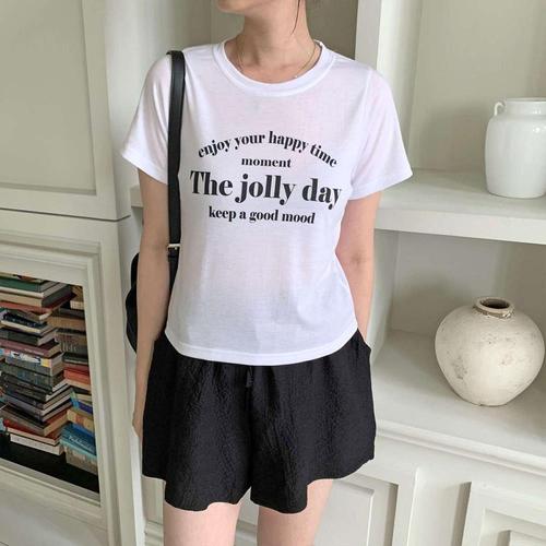 [1+1] 여자 레귤러핏 필기체 캐쥬얼 U넥 반팔티