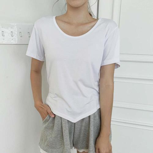 [1+1] 여성 면혼방 언발 편한 반소매 U넥 티셔츠