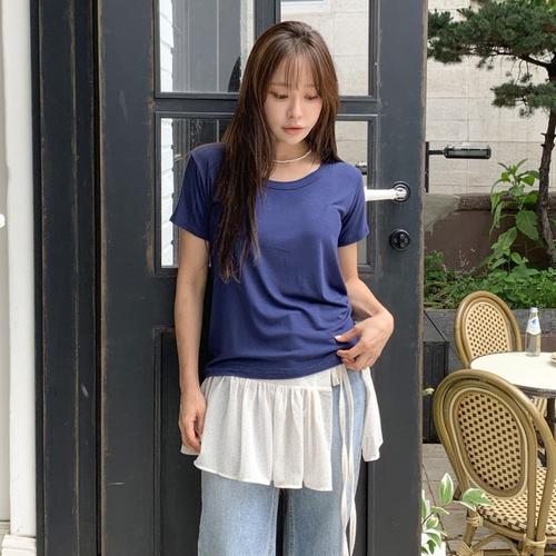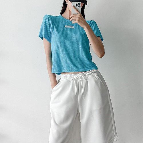 [1+1] 여자 탱크 조각 파랑색 반소매 골지티 티셔츠