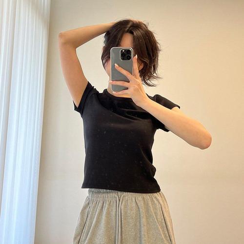 [1+1] 여자 민무늬 크롭반팔티 라글란 편한 티셔츠