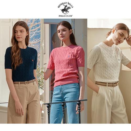 [비버리힐즈폴로클럽]25SS 여성 반팔 케이블니트 3종