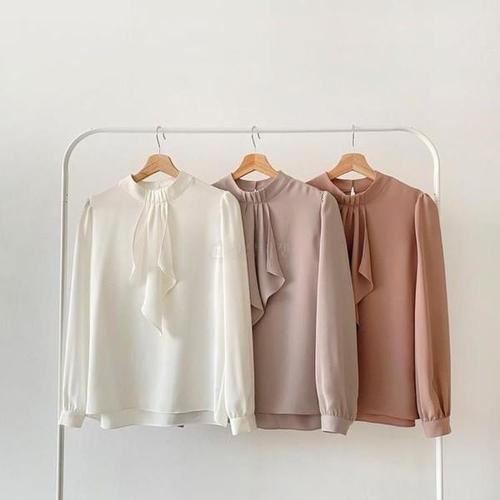 [신상오픈런]케슈라 수트 하이넥 롱슬리브 가을 크림 블라우스 여성 프릴장식