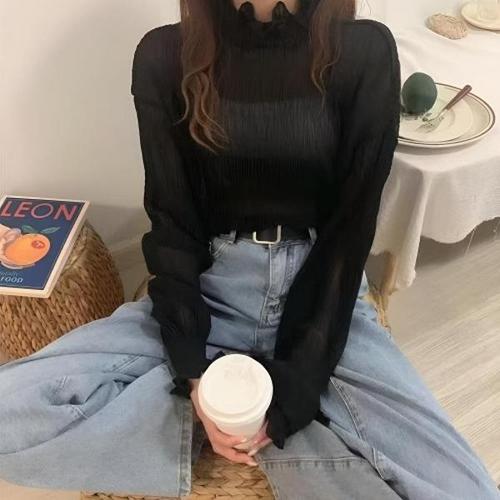 얇은 레이스 반폴라 니트 긴팔 티셔츠 여성 봄 가을 S~XL 인박카23951