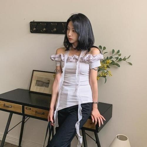 [다잇템][다잇템] 여성 블라우스 컷아웃 언발 U넥 SS 반소매 프릴 면티_21957869_588872